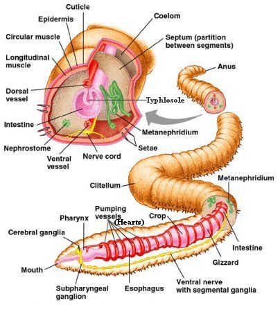 Check out the illustration! You can see the 5 hearts and the two blood vessels, ventral and dorsal. I grabbed this picture off of a cool site, Kingston Worm Farm. They too are spreading the word of the worm.