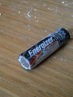 Yuck! I really wish I put something on the table before I dumped them. This battery was already leaking the bad stuff! What it is….. I don’t really know to be honest with ya! I just have a feeling it can’t be good because my hair had a run in with a dead car battery that was stored in the back of my trunk when I skipped high school! ‘nough said!