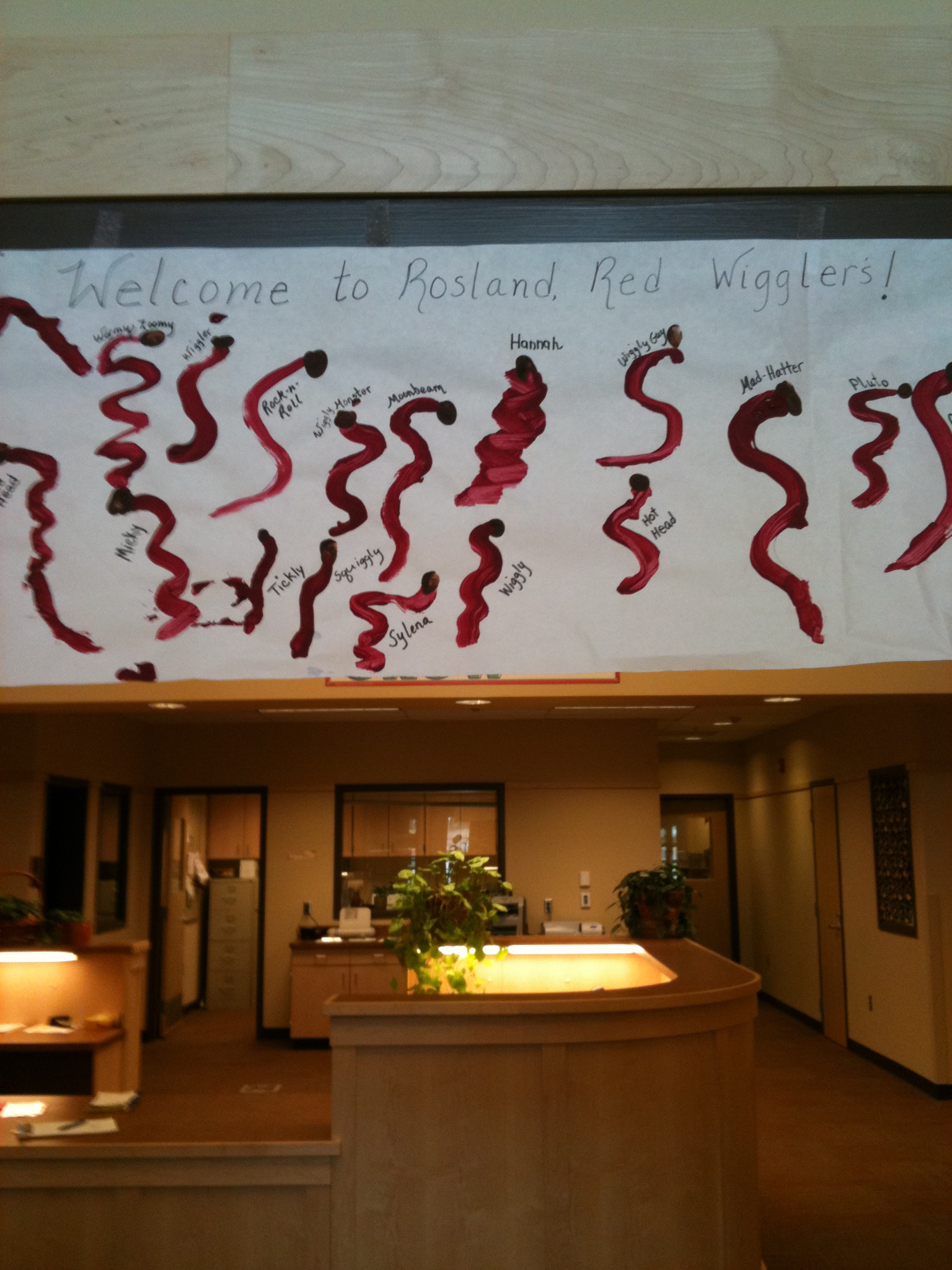 I wanted to share this adorable poster that welcomed me upon my arrival at Rosland Elementary in La Pine. Mrs. Ayres hung this in the foyer after her first graders wiggled their fingers on the paper. The kids were so excited to have new wiggler friends at Rosland to share their fruit and veggies scraps!
