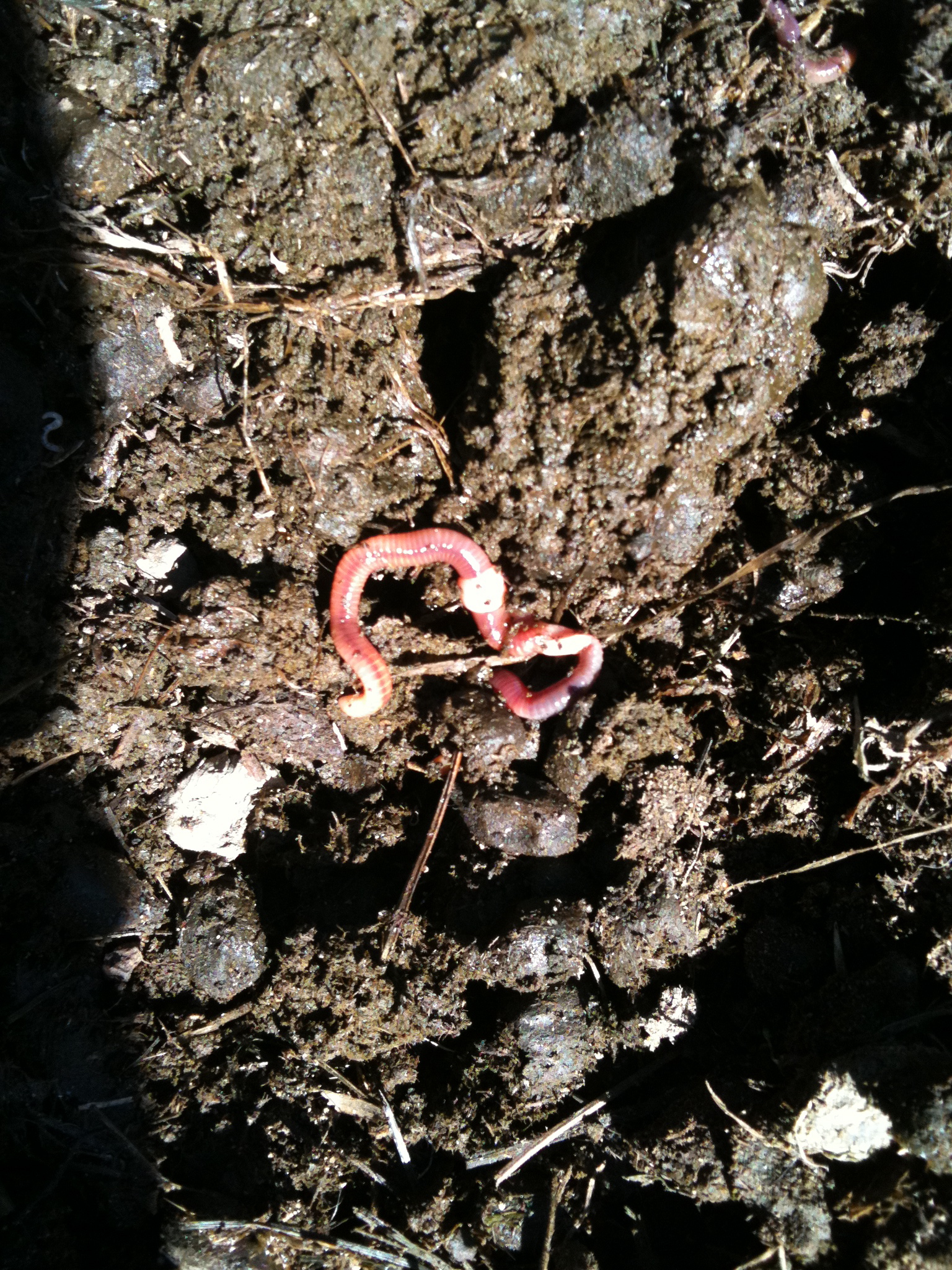 4 months ago I introduced some Red Wigglers to Alpaca poop, and they are getting along pretty well! The wigglers are making themselves at home and are comfortable enough to get busy. They are mating and making more happy and healthy cute little wigglers in the muck. The proof is in the picture. It kind of looks like a deformed Red Wiggler, but it’s actually two wigglers together. I didn’t want to keep them uncovered too long. So I quickly took this shot, then covered them back with a nice squishy layer of poopy.