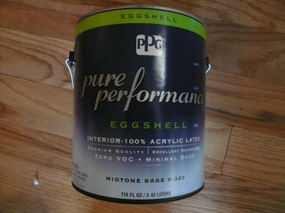 They came home rather quickly with a bunch up supplies. I realized they went to the local hardware store rather than the mega one. Carlos was pleased to show me his selection of paint. Pure Performance by Pittsburgh (Go Steelers…was rooting for the Jets..NY baby…but went to Penn State so will support the Steelers) Paints is in their line of Ecological Solutions. I was happy to see this because painting stinks, and sometimes the smell gives me a terrible headache. As you can see on the can, there are Zero Vocs and minimal odor. So off they went to tackle the room. Little a was so excited she could barely talk. Carlos told me later, while painting she said, “Dad, I am so happy to have you!” Dang that little girl can grab your heart and squeeze it!